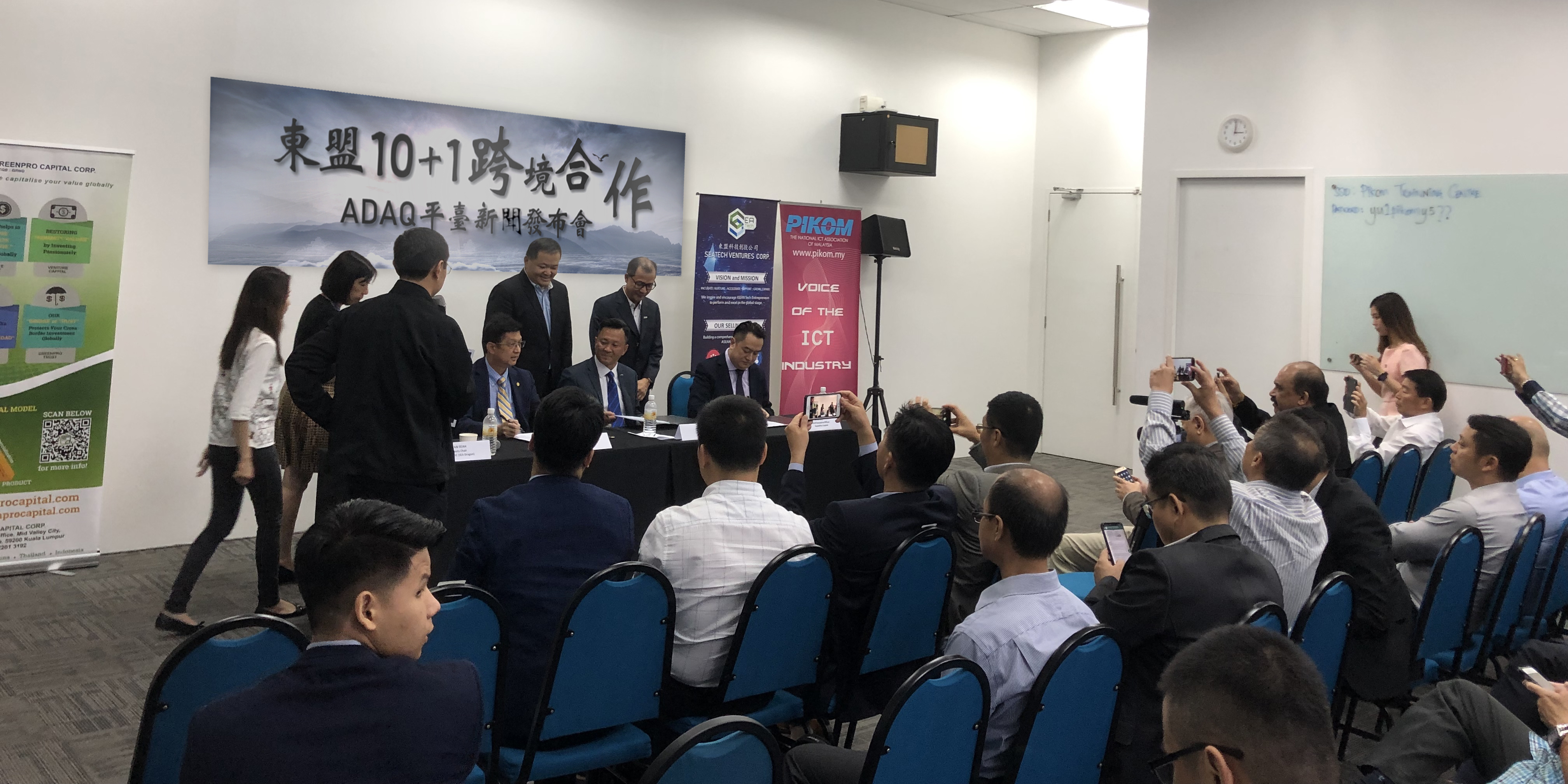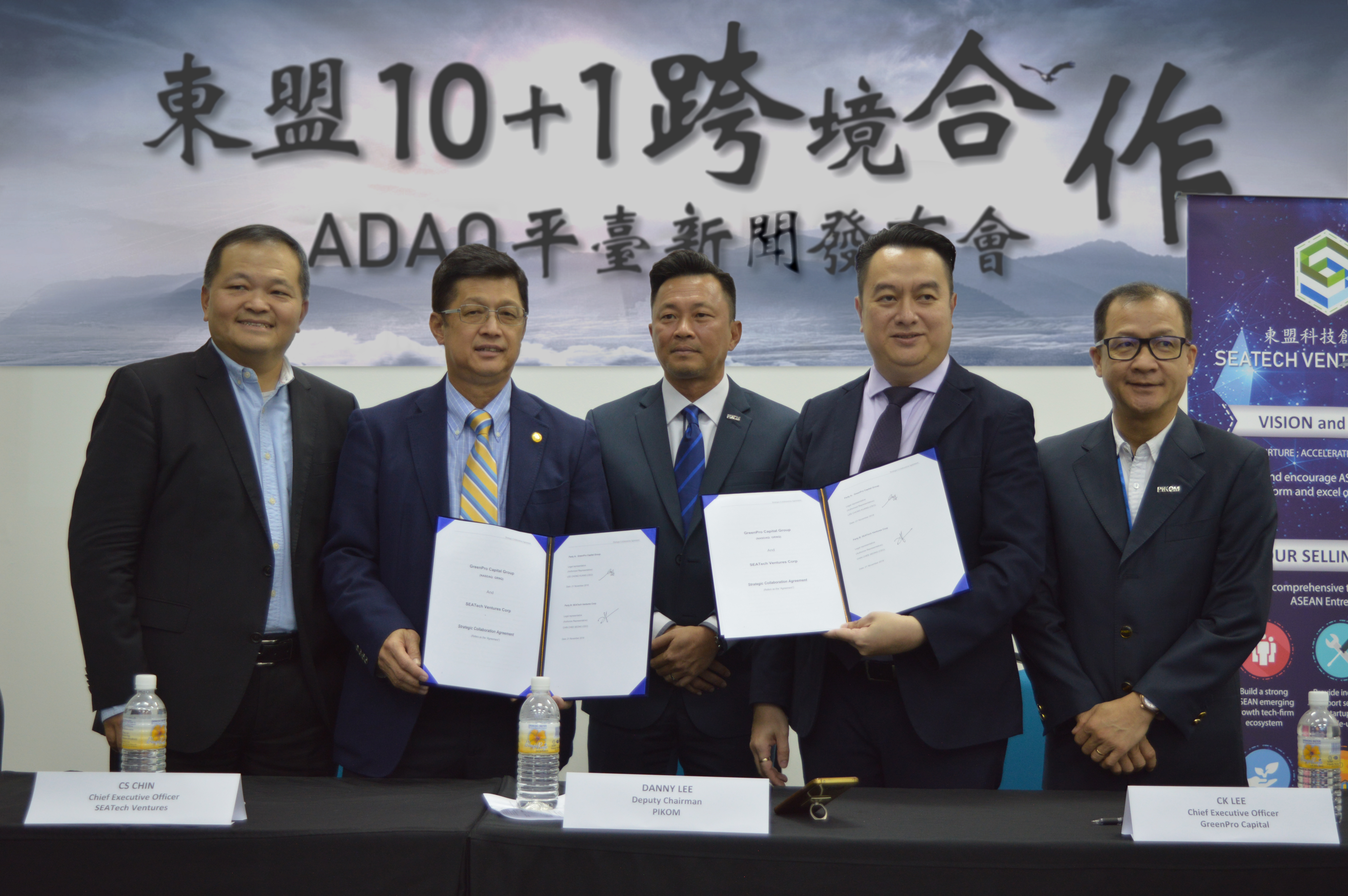 Kuala Lumpur, 21st November 2018, The National ICT Association of Malaysia (PIKOM), SEATech Ventures Corp., and GreenPro Capital Corp (Nasdaq: GRNQ) signed the Memorandum of Understanding as well as collaboration agreement at PIKOM headquarter today as a symbol of entering a new partnership to create greater value for the high-growth emerging companies in ASEAN.